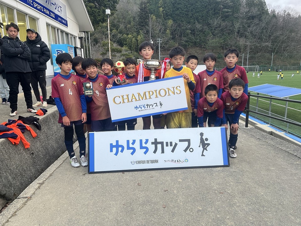 12月20〜21日に参加させていただいた ゆららカップU12にて、見事優勝しました。 1日目、2日目ともに時々小雨が降る中、子供達は練習での成果を出すべく頑張りました。その結果の優勝🏆おめでとう。 年内の試合も残り1日、この調子のまま次の試合も頑張れ!